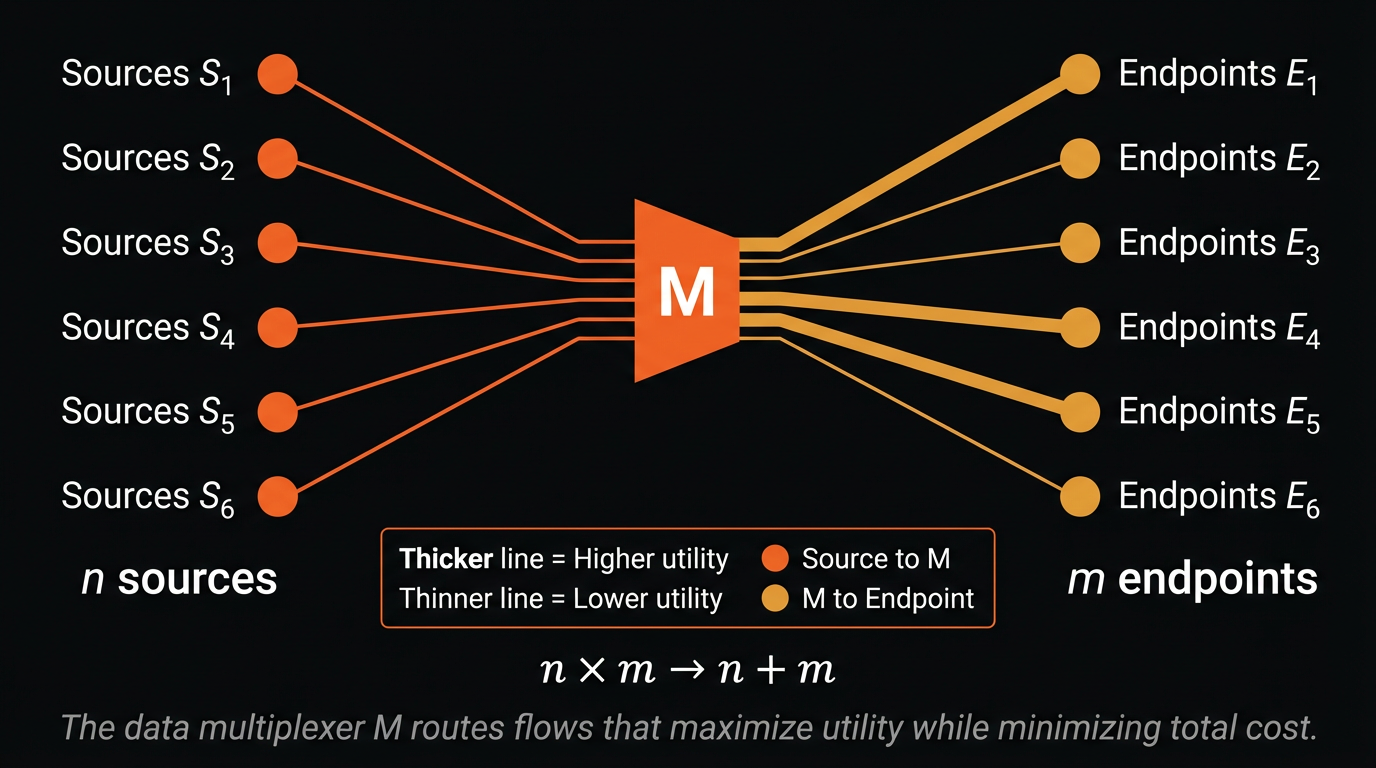 This is the Coasean insight applied directly: firms build internal data teams and rely on trusted intermediaries because the transaction costs of procuring data through open markets are prohibitively high. Reduce those transaction costs to near zero, and the boundary between what is efficiently sourced internally and what can be procured externally shifts dramatically. The multiplexer does not replace the market mechanism. It makes the market mechanism work for data in a way that it never has before.